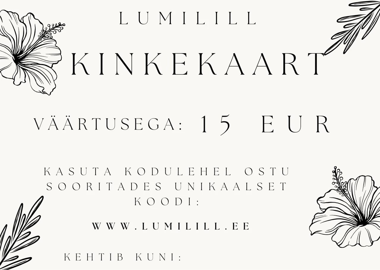 Ostes kodulehelt kinkekaardi, saadame Sulle 24 H jooksul e-mailile kinkekaardi, mille saad vajadusel välja printida.